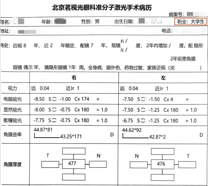 暑期是近视眼手术高峰季,术前检查中发现不少近视度数高、角膜薄、形态不规则的情形。他们有志于参军,常规手术方式无法矫正视力,晶体植入手术又不被允许。这种情形下可以选择薄瓣飞秒LASIK联合角膜交联手术,实现人生梦想。下面结合一则病例加以分析。